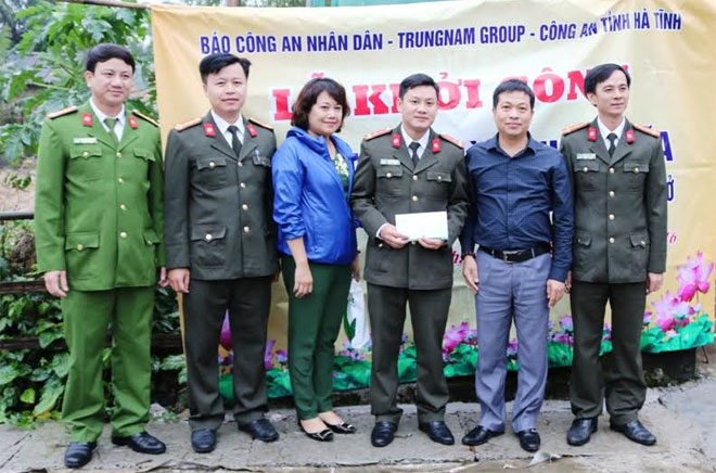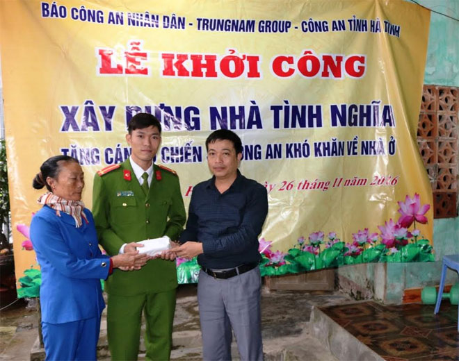 Trong đợt công tác về với miền Trung yêu thương lần này, Đoàn công tác của Báo CAND và Trung Nam Goup cũng đã đến Hà Tĩnh trao hỗ trợ 100 triệu đồng để làm nhà cho 2 đồng chí gồm: Thượng úy Trần Quốc Lập, xã Thạch Hạ, thành phố Hà Tĩnh, hiện đang công tác ở Phòng PV28 Công an Hà Tĩnh và đồng chí Trung úy Nguyễn Đức Hào, trú xã Thạch Châu, huyện Thạch Hà hiện đang công tác tại Công an huyện Lộc Hà.