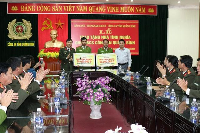 Cùng với đồng chí Duẫn, trong đợt này Đoàn công tác của Báo CAND và Trung Nam Goup còn trao 50 triệu đồng hỗ trợ làm nhà cho đồng chí Trung úy Cao Xuân Giá, đang công tác tại Công an huyện Minh Hóa, Quảng Bình.