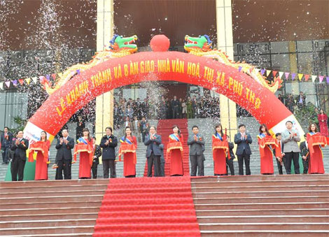 | Lễ cắt băng khánh thành công trình NVH thị xã Phú Thọ. |