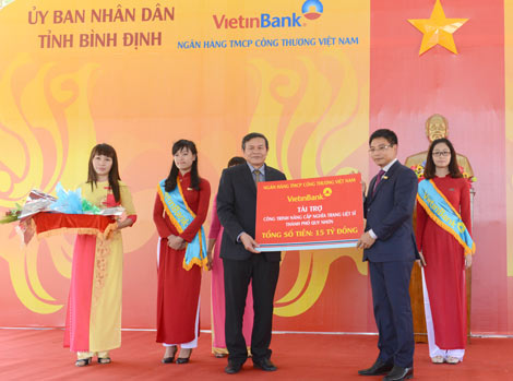 Từ năm 2009 đến nay, VietinBank đã hỗ trợ tỉnh Bình Định số tiền trên 27 tỷ đồng để xây dựng 62 căn nhà cho các hộ nghèo; tặng 1 xe ô tô cứu thương chất lượng cao cho Bệnh viện Phong Da liễu TW Quỳnh Lập.