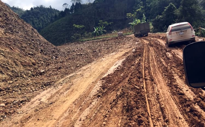 | Con đường đất trơn trượt đi lại của người dân nơi đây còn rất nhiều khó khăn. |