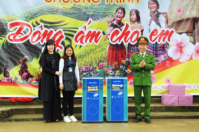 Tại đây, Thiếu tướng Phạm Văn Thế, Phó Cục trưởng Cục Cảnh sát QLTGTG & THAHSTCĐ và Đại tá Nguyễn Thanh Tuân, Phó Giám đốc Công an tỉnh Bắc Kạn đã cùng các nhà tài trợ và thành viên trong Đoàn gửi trao tận tay 238 em học sinh mỗi người một phần quà gồm chăn ấm, gối, áo ấm. Ngoài tủ sách truyện thiếu nhi, Đoàn còn gửi tặng nhà trường 2 máy lọc nước sạch hỗ trợ việc chăm lo, sinh hoạt cho các em học sinh trị giá hơn 10 triệu đồng.