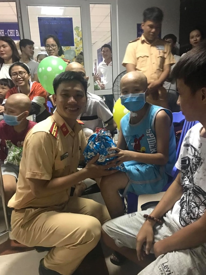 Chúng tôi còn được biết, tranh thủ trong khoảng thời gian làm việc đảm bảo TTATGT Tết Trung thu, các chiến sĩ, cán bộ, đoàn viên của phòng CSGT Đà Nẵng đã đến động viên, cùng vui chơi, chia sẻ những đau đớn, khó khăn của các bệnh nhi ung thư tại Bệnh viện Ung bướu. Chính “nhiệm vụ” đặc biệt trong đêm Trung thu ấy của các chiến sĩ CSGT đã khiến cậu bé Nguyễn Đăng Nam (14 tuổi, quê Điện Bàn, Quảng Nam) vui mừng xúc động.