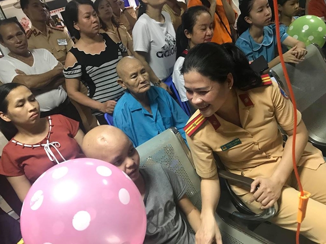 Tối muốn ngày 13/9 ở Bệnh viện Ung bướu Đà Nẵng, tiếng hát, tiếng cười phá cỗ đêm rằm của hơn 20 em nhỏ cùng các chiến sĩ CSGT tràn ngập tầng 10, khoa Nhi của bệnh viện.