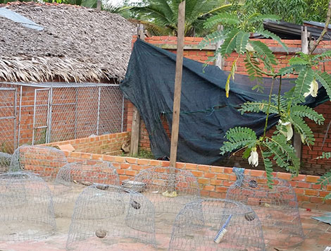 | Trên nhiều nẻo đường ở Bến Tre có xuất hiện nuôi gà đá. |