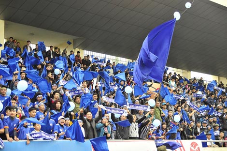 | V.League 2014, sân Cẩm Phả (Quảng Ninh) là một trong hiếm hoi các SVĐ luôn đông khách. Ảnh: H.M. |