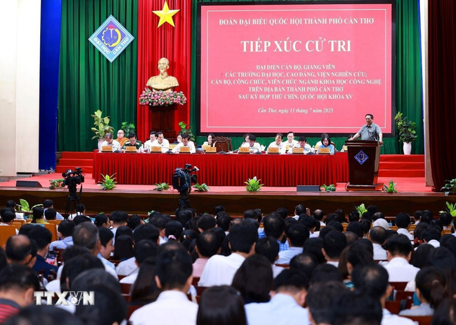 Chiều 13/7, Thủ tướng Chính phủ Phạm Minh Chính và các đại biểu Quốc hội Đoàn đại biểu Quốc hội TP Cần Thơ đã tiếp xúc cử tri là cán bộ, giảng viên các trường đại học, cao đẳng, viện nghiên cứu; cán bộ, công chức, viên chức ngành khoa học, công nghệ trên địa bàn thành phố Cần Thơ.
