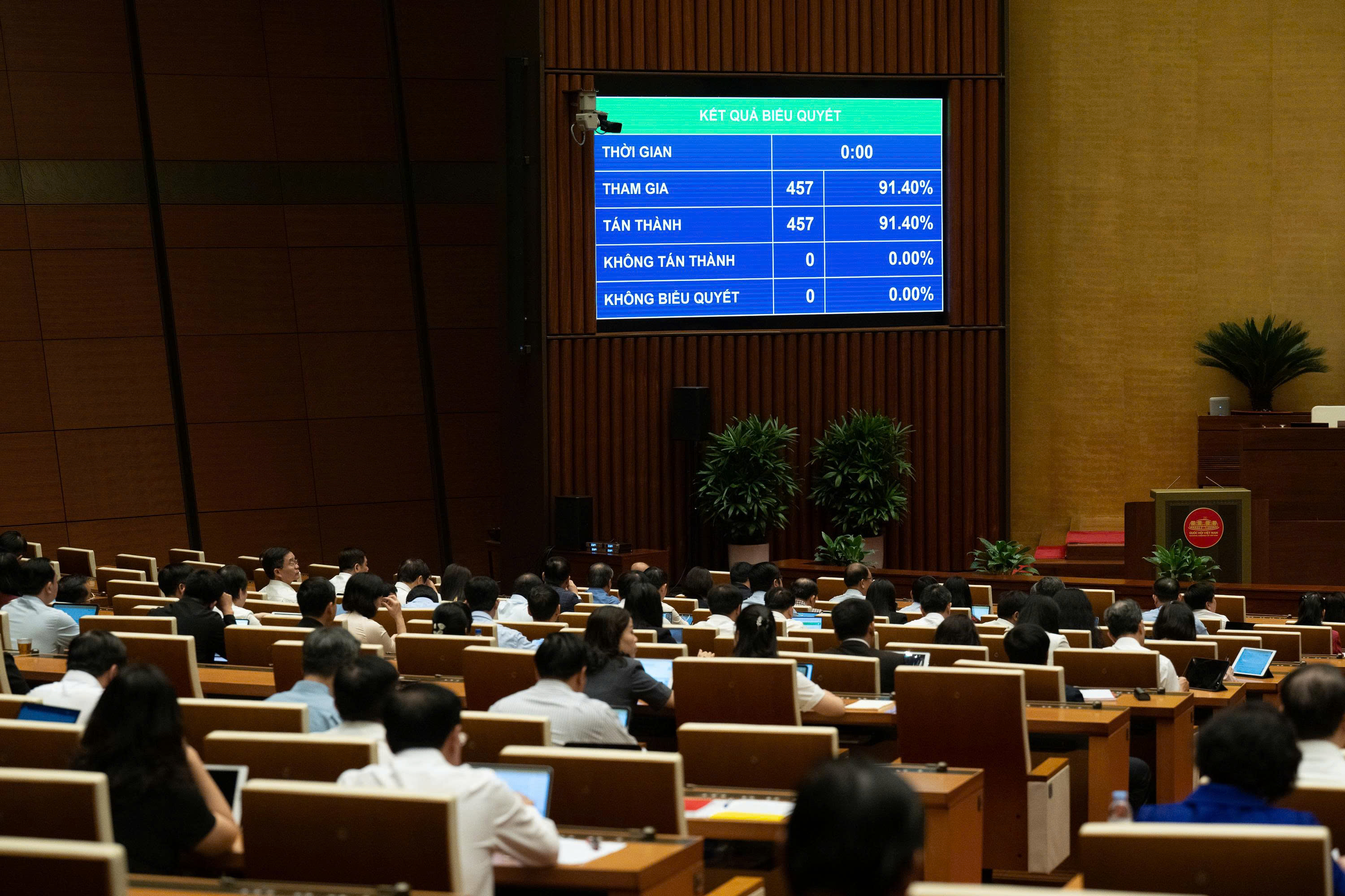 Tại Kỳ họp thứ nhất, Quốc hội khóa XVI, sáng 12/4, dưới sự điều hành của Phó Chủ tịch Quốc hội Nguyễn Khắc Định, với 457/457 đại biểu Quốc hội tham gia biểu quyết tán thành, Quốc hội thông qua việc sửa đổi, bổ sung Chương trình Kỳ họp thứ nhất.