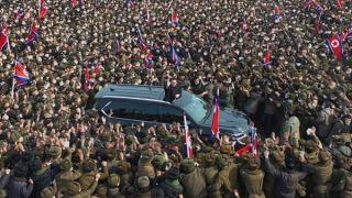 "Biển người" vây quanh xe chở nhà lãnh đạo Triều Tiên Kim Jong-un