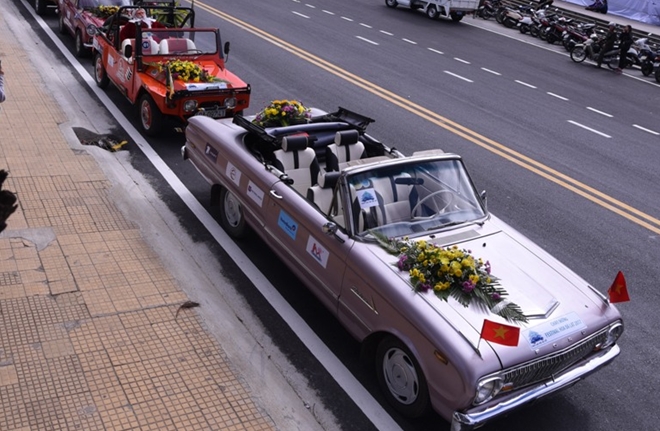 Buổi diễu hành đã thu hút gần 30 chiếc xe cổ từ 7 dòng xe có thương hiệu của các nước Italia, Pháp, Đức, Nhật Bản... |