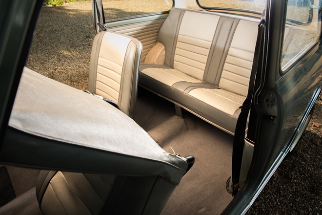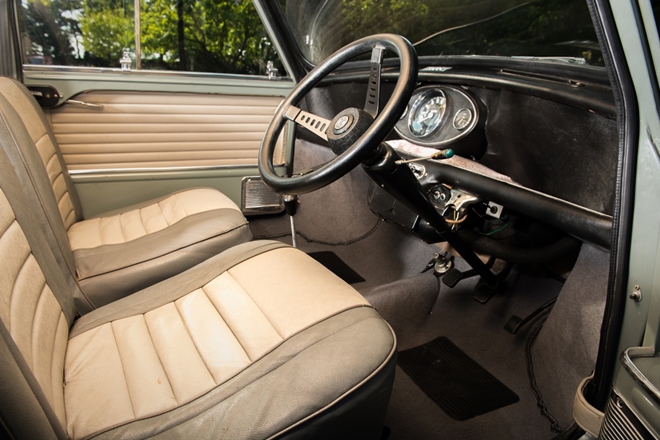 Chiếc Mini cổ điển này cũng kèm theo một tập dữ liệu lịch sử, một giấy chứng nhận di sản và những đăng kiểm cũ xác nhận số dặm thực sự thấp (20.034 dặm / 32.242 km).