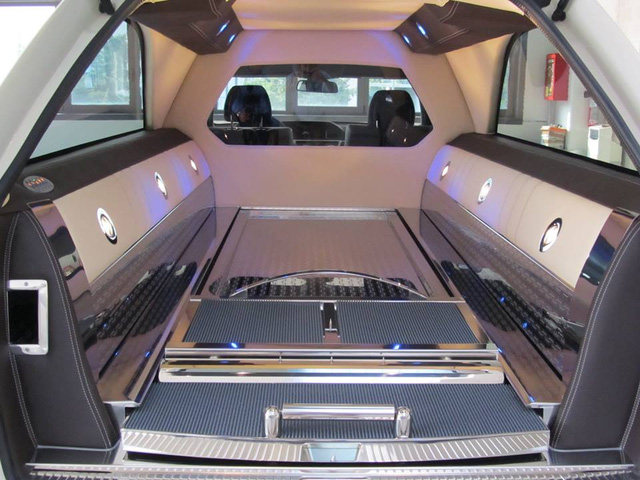 Nơi chứa quan tài được làm từ sợi thủy tinh, trong khi cửa sau có thể được mở từ một nút bấm bên trong xe hoặc thông qua điều khiển từ xa tiện lợi.