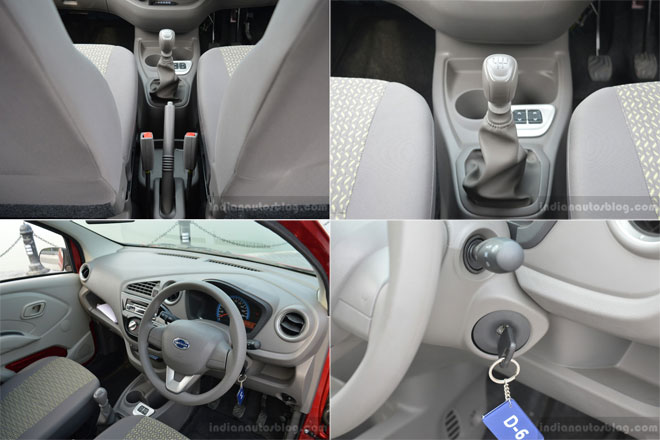 Về nội thất, Datsun Redi-GO được thương hiệu xe Nhật trang bị đèn LED chiếu sáng ban ngày, cửa sổ điện phía trước, tay lái trợ lực, hệ thống âm thanh với đầu CD kết nối Radio, USB, AUX và một túi khí cho người lái.