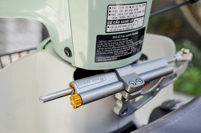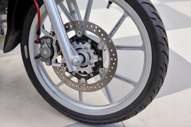 Hệ thống phanh mới cùng chiếc ống-xả nguyên bản màu sơn đen vẫn được chủ nhân giữ lại. Hiện không rõ giá của gói độ trên là bao nhiêu, tuy nhiên giá bán của chiếc Super Dream 110 nguyên bản là 19 triệu đồng.