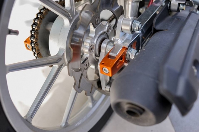 Bánh xe thay vì đi bánh căm nguyên bản được thay thế bằng bộ mâm Daytona cứng cáp và thể thao, trang bị cụm phanh trước heo Brembo 2 pis đối xứng và đĩa Brembo.
