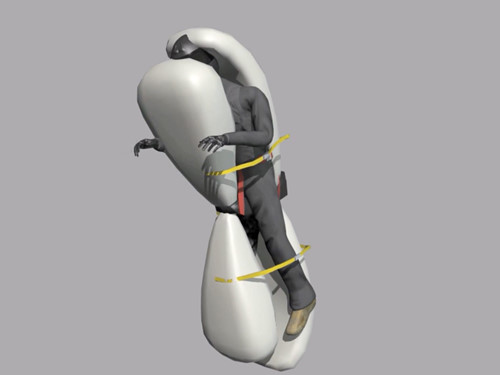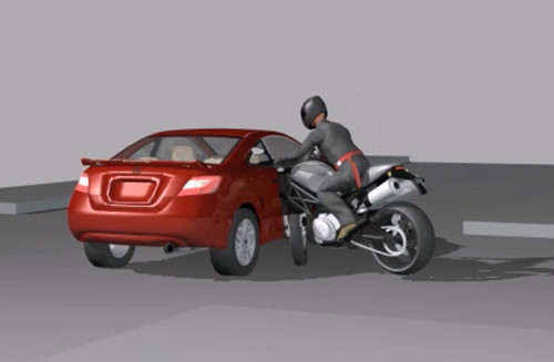 Tình huống mô phỏng tai nạn giao thông xảy ra giữa xe mô tô và ô tô được thể hiện dưới dạng video 3D. Theo đó, hệ thống túi khí được tích hợp trong yên xe sẽ hoạt động và bao bọc toàn bộ cơ thể người lái ngay sau khi xảy ra va chạm.