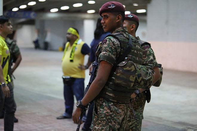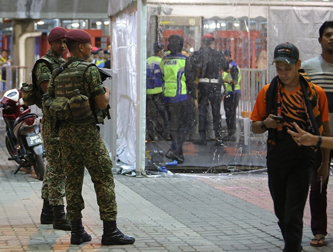 Trong chiều nay, máy bay trực thăng của lực lượng cảnh sát Kuala Lumpur cũng quần thảo trên bầu trời, quanh khu vực sân Bukit Jalil.