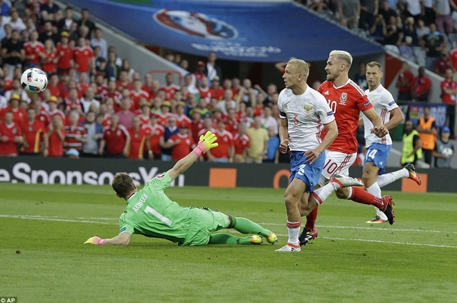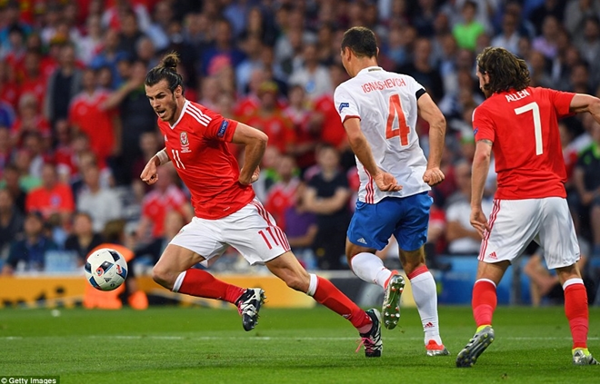 Sự kém vô duyên của Gareth Bale đã được khai tỏa, khi phút 67, một đường chuyền như "dọn cỗ" của Ramsey giúp siêu sao 26 tuổi đối mặt với Akinfeev. Lần này, anh đã không bỏ lỡ cơ hội mười mươi với cú lốp bóng chuẩn xác làm tung lưới đối phương nâng tỉ số lên 3-0 cho Xứ Wales.