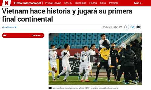 Việt Nam gây sốt khi vượt qua hàng loạt ứng cử viên nặng ký để vào chung kết giải U23 châu Á. Tin tức chấn động này được nhiều tờ báo, hãng truyền hình uy tín trong châu lục đưa tin. Tuy nhiên, việc Marca cũng chú ý tới chiến tích này cho thấy sức nóng của thầy trò HLV Park Hang-seo đã lan sang cả châu Âu.