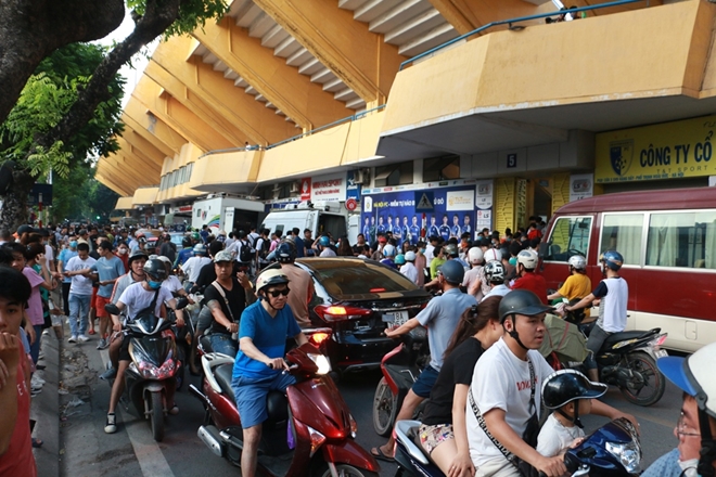 | Càng gần đến giờ bóng lăn các con phố quanh sân vận động Hàng Đẫy (Hà Nội) càng thêm tấp nập. |