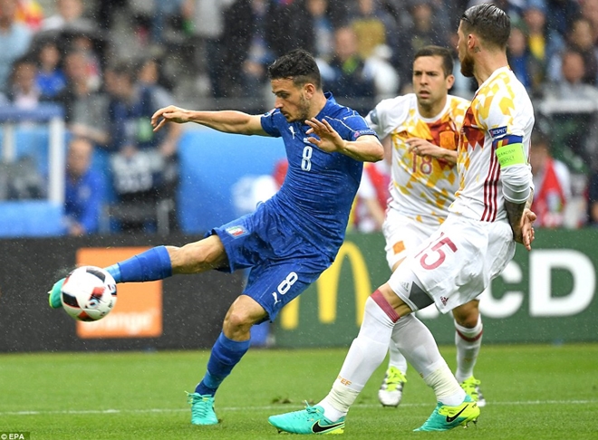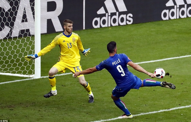 Eder sút phạt cực mạnh, De Gea chặn được và còn cản thành công Giaccherini khi tiền vệ của Italy ập vào định đá bồi. Tuy nhiên, Chiellini đã ngay lập tức lao vào tiếp ứng, sút tung lưới các nhà đương kim vô địch.