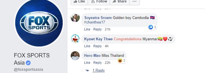 Sau khi bài viết này được đăng tải trên fanpage của FoxSport Asia lập tức ngập tràn các comment của CĐV Đông Nam Á. Một tài khoản có Htet Gunner (Myanmar) đăng bình luận rằng: “Chia buồn cùng Thái Lan và Malaysia”, một tài khoản khác có tên là Hero Mao thì còn "sâu cay hơn" khi bình luận rằng "nhớ Thái Lan".