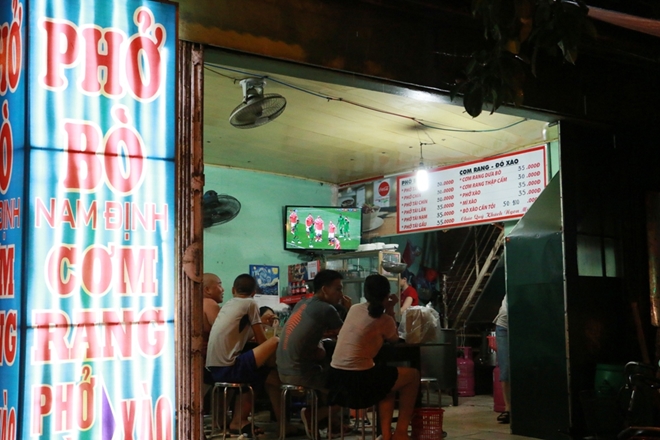 | Các nhà hàng, quán ăn ở phố Xã Đàn, Giải Phóng,... có quy mô khá nhỏ nên không trang bị máy chiếu. Thay vào đó, mỗi quán có từ 1 đến 2 chiếc tivi để phục vụ khán giả. |