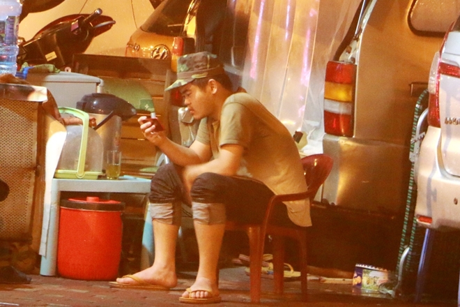 | Bảo vệ của một bãi giữ xe trên ngã tư Xã Đàn - Giải Phóng sử dụng điện thoại truy cập vào trang web của VTV để xem trực tuyến bóng đá thay cho ngày thường chỉ ngồi không. |