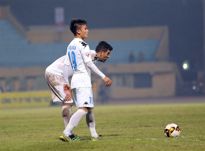 Thật bụng, tôi ấn tượng với cậu bé này từ mùa giải năm ngoái, khi cậu vung chân ghi bàn vào lưới Bình Dương trên sân khách và QNK. Quảng Nam trên sân nhà. Cả hai lần vung chân đều có chung một kịch bản: Nhận được bóng trong vòng 16m50, sát thủ Hoàng Vũ Samson chuyền ngược trở lại, và Quang Hải băng lên, vung chân một chạm rất nhanh. Đấy là chân trái, một cái chân trái khiến tôi lờ mờ nhớ tới Thạch Bảo Khanh ngày nào.