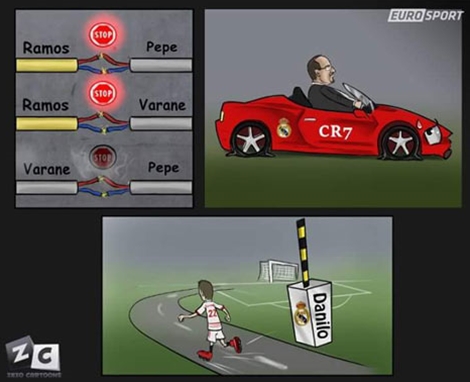 Chiếc xe đua CR7 "hết hơi" sau khi các khi các bộ phận quan trọng là Ramos, Pepe, Varane không ăn khớp với nhau.