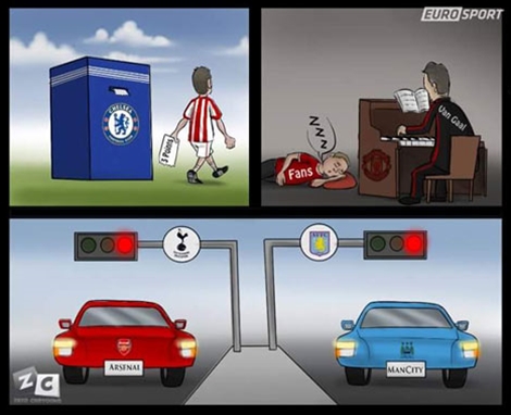 Trang tin thể thao Euro Sport liên tục tung ra các biếm họa thể hiện cái nhìn hài hước về những sự kiện bóng đá xảy ra gần đây.