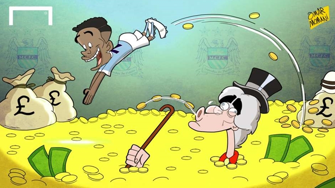 | Raheem Sterling ngụp lặn trong "biển tiền" của Man City. Á quân giải Ngoại hạng đã bỏ ra 49 triệu bảng Anh (hơn 75 triệu USD) để chiêu mộ cựu cầu thủ Liverpool. |