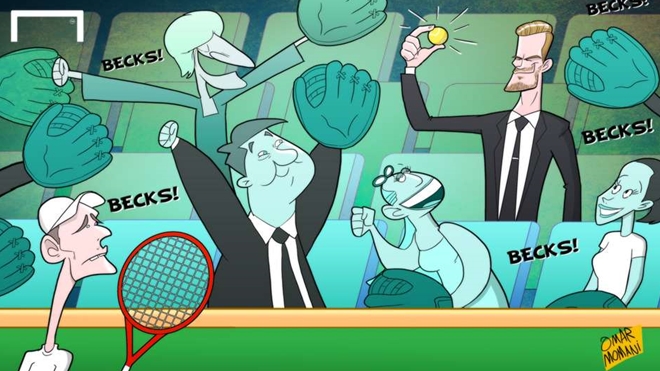 | David Beckham luôn nổi bật dù ở cả trên sân quần vợt. Đến theo dõi một trận đấu tại Wimbledon, cựu danh thủ đã thu hút rất nhiều sự chú ý với pha bắt dính trái bóng tennis. |
