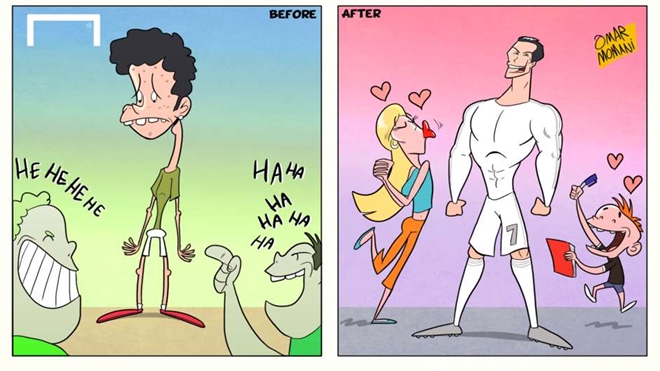 | "Khi tôi còn trẻ, hầu hết mọi người đều nói rằng tôi là một cầu thủ có tài nhưng quá gầy" Cristiano chia sẻ. Những lời chê bai đó là động lực khiến CR7 có thể hình đẹp như bây giờ. |