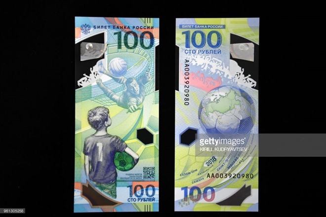 Trong lúc đếm ngược chờ trái bóng lăn tại World Cup 2018, nhiều người hâm mộ đang chuyển sang săn lùng tờ tiền lưu niệm mệnh giá 100 Ruble được Ngân hàng Trung ương Nga mới phát hành.