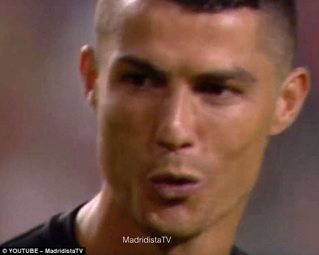 | Khuôn mặt của CR7 khi chứng kiến con trai trổ tài. |