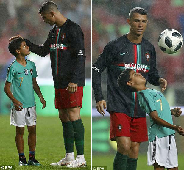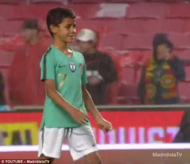 Cậu bé 7 tuổi Cristiano Ronaldo Jnr đã thêm một lần khiến giới mộ điệu túc cầu một lần phải trầm trồ khi chứng kiến màn trổ tài vừa qua. Chuyện bắt đầu sau khi trận giao hữu giữa đội tuyển Bồ Đào Nha và Algeria kết thúc với chiến thắng 3-0 cho các nhà vô địch Euro.