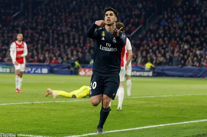 | Marco Asensio đóng vai người hùng với bàn thắng ấn định tỷ số 2-1 cho Real. |