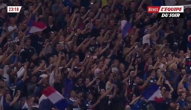 | Hàng vạn CĐV Pháp cũng đã hát theo bài hát này. "Anh ấy thấp, anh ấy đẹp và anh ấy là người có thể ngăn chặn được Messi..." |