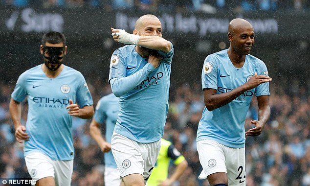 | HLV Guardiola cũng tuyên bố "Chúng ta giành chiến thắng này cho David Silva và Jessica (bạn gái Silva)." |