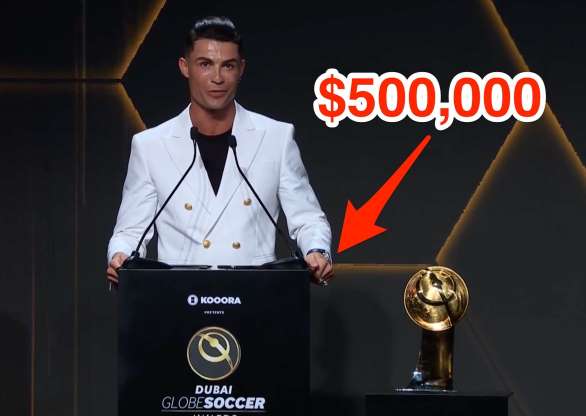 Daily Mail khẳng định chiếc đồng hồ mà siêu sao người Bồ Đào Nhà đeo trong lễ trao giải là loại Rolex GMT-Master Ice. Đây là loại đồng hồ đeo tay của nam đắt nhất thế giới khi được chế tạo hoàn toàn thủ công bằng vàng trắng 18-Carat đồng thời đính thêm kim cương 30-Carat. Một chiếc đồng hồ GMT-Master Ice được hãng Rolex "hét" tới 497.040 USD.