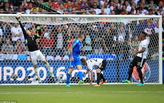 Ở phút bù giờ, nếu không có pha phản xạ tuyệt vời của thủ môn bên phía Slovakia thì Đức đã có bàn thắng thứ 4 sau pha dứt điểm rất nhanh từ chân của Kroos.
