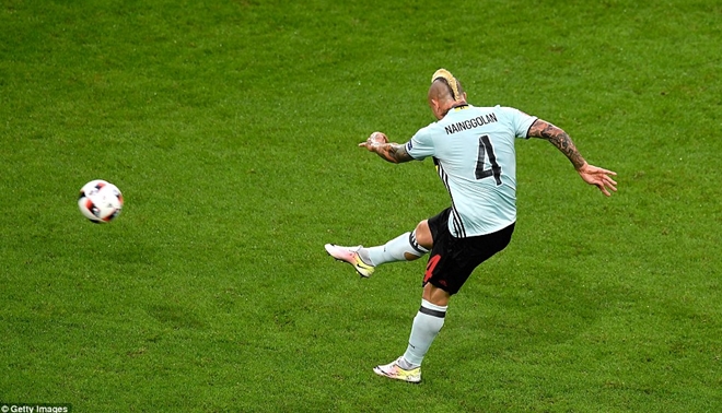 | Radja Nainggolan đã tung ra cú sút xa với uy lực khủng khiếp và hiểm hóc để làm tung lưới khung thành của thủ môn Wayne Hennessy, mở tỉ số cho ĐT Bỉ. |