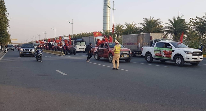 Sau thành công của cả hai đội tuyển bóng đá ở SEA Games rất nhiều hâm mộ đã kéo về Nội Bài để có thể tận mắt trông thấy những "người hùng quốc gia". Song cũng chính vì thế mà trách nhiệm dồn lên vai lực lượng CSGT cũng càng nặng hơn... Những bóng áo vàng liên tục xuất hiện trên các tuyến đường bên ngoài Cảng hàng không Nội Bài nhằm giữ cho giao thông được an toàn.