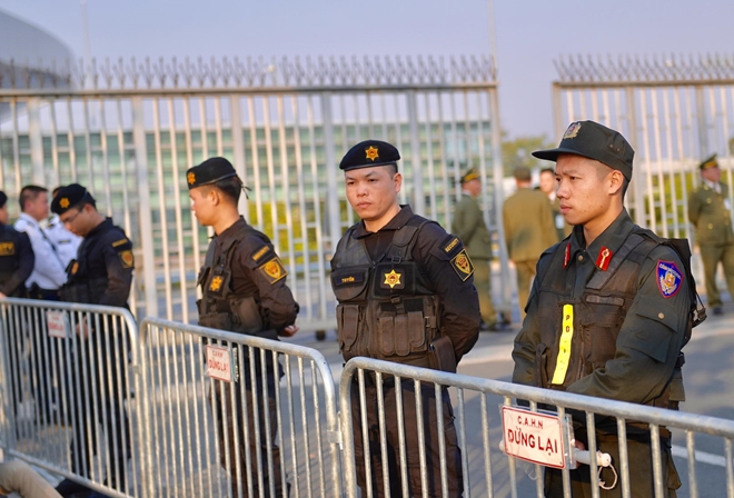 Dọc các tuyến đường được dự kiến đoàn xe chở hai đội tuyển đi qua cũng có rất nhiều cán bộ chiến sĩ Công an túc trực nhằm bảo vệ trật tự, an ninh.