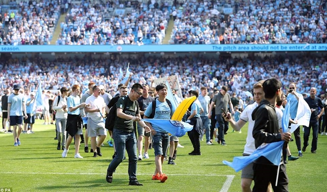 - Cổ động viên Man City tràn xuống sân ăn mừng chức vô địch