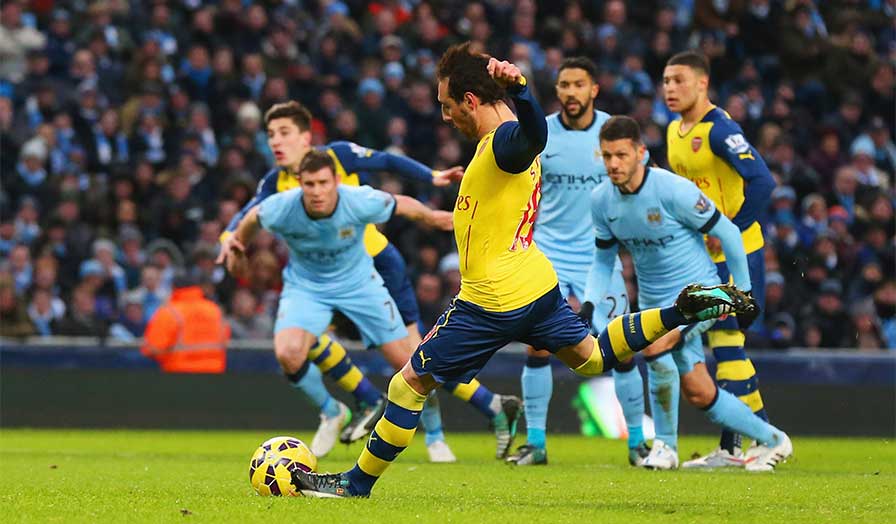 Lối đá như mơ ngủ trên sân khi tiếp một Arsenal đang có phong độ ấn tượng gần đây đã làm chủ nhà trả giá. Sau một loạt các pha tấn công nhanh, Arsenal đã có cơ hội bằng vàng khi Kompany phạm lỗi quá rõ ràng biếu không cho đối thủ một quả phạt đền. Cú sút sau đó của Cazola quá mạnh khiến Joe Hart dù đoán được hướng bóng nhưng cũng không thể cản phá.