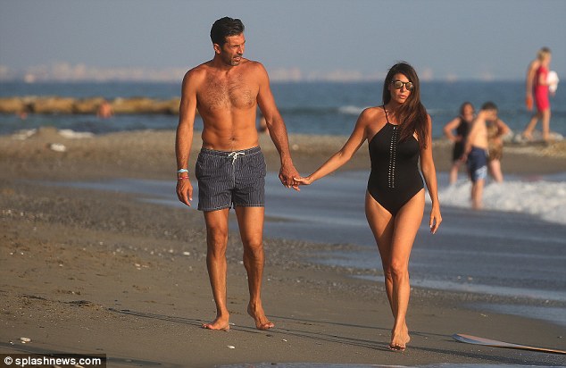 | Cặp đôi thản nhiên đi dạo, trước tin đồn vào ngày 9-7 tới Buffon sẽ chính thức gia nhập đội bóng Pháp PSG. |