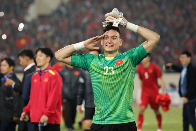 | Văn Lâm sau chiến thắng ở trận chung kết AFF Cup. Ảnh: Sơn Tùng |