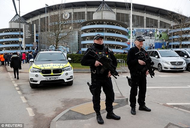 | Cảnh sát vũ trang đã được điều đến sân vận động Etihad. Ảnh: Reuters. |